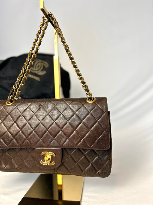 Chocolate Brown Chanel 1980s Vintage Medium Lambskin Classic Flap & Chanel Sneakers