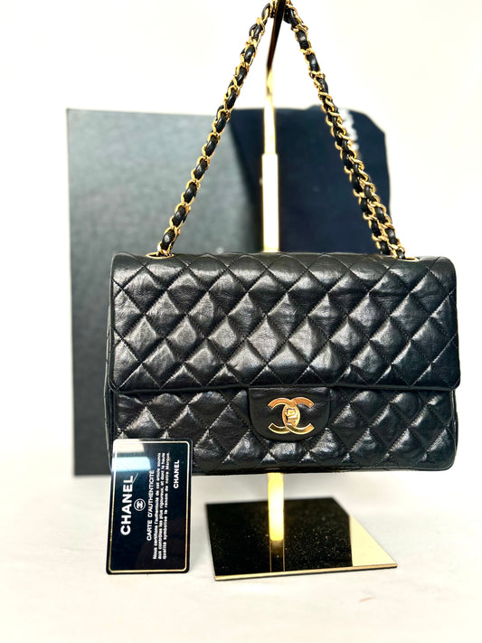Authentic 1980s Chanel Lambskin Medium Classic Flap with 24k gold plated hardware