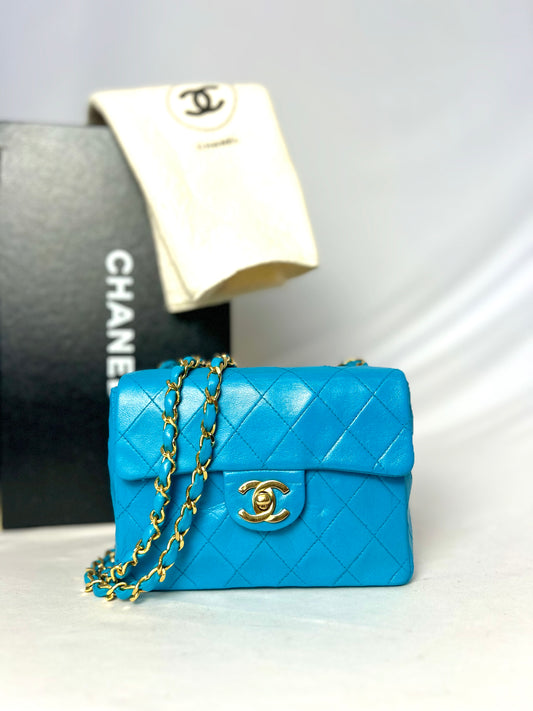 Chanel Aqua Blue Lambskin Mini Square