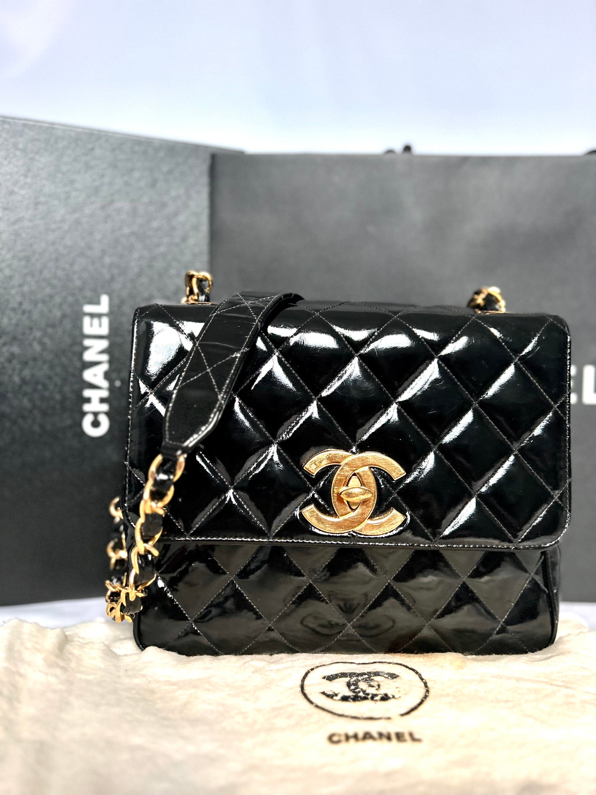 Gorgeous Vintage Black Patent Leather Square Bag